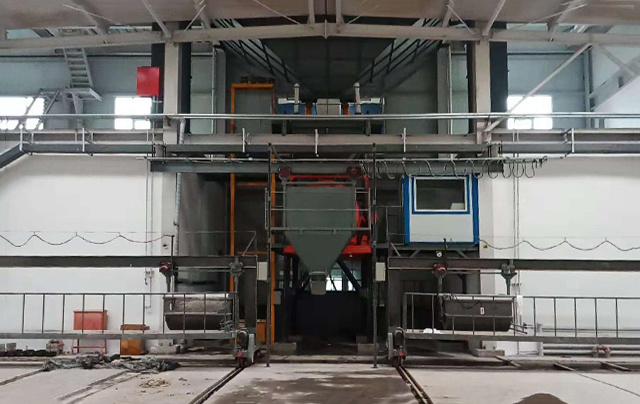 可實現(xiàn)制漿、成型、養(yǎng)護、脫模、組模等全套工序的閉環(huán)自動生產(chǎn),板面一次成型;解決了輕骨料混凝土的攪拌與布料難題,生產(chǎn)效率高、成品質(zhì)量穩(wěn)定、外形美觀。