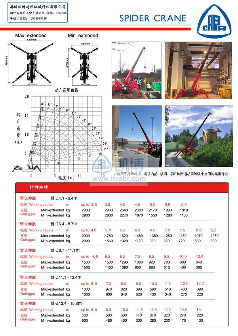 大作業(yè)幅度15m、大起升高度16m、起重量3t