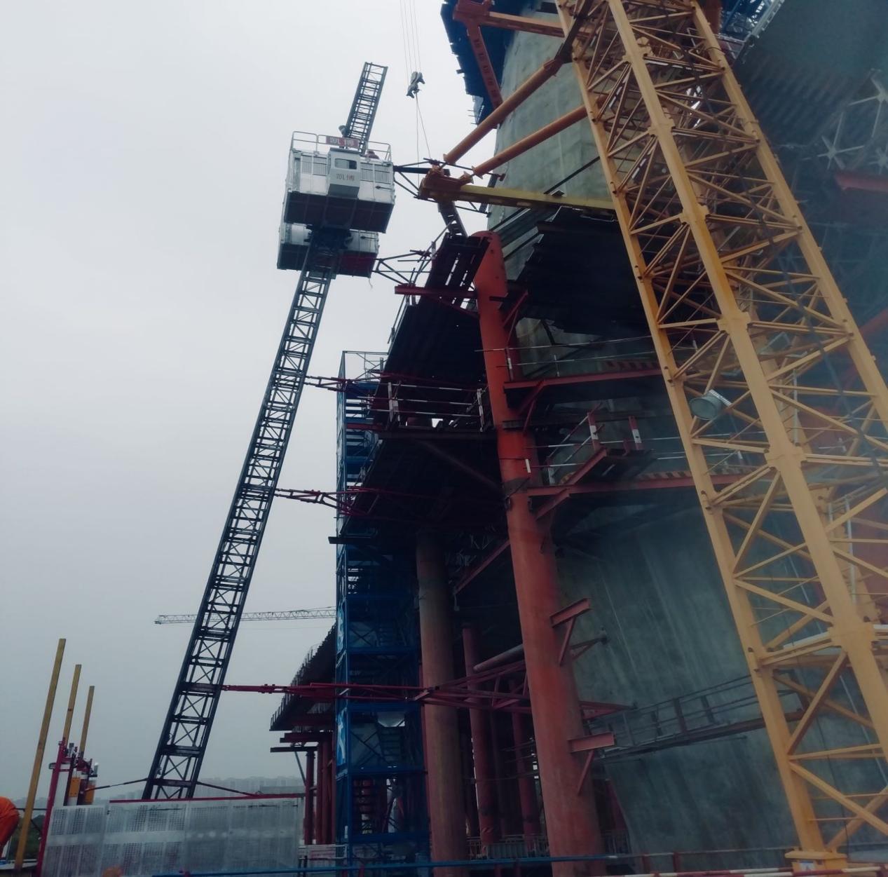 近日,廊坊凱博建設(shè)機(jī)械科技有限公司生產(chǎn)的斜、直線(xiàn)兩用施工升降機(jī)順利投入到廣東佛山“三水三橋”項(xiàng)目。此類(lèi)型升降機(jī)承重架和吊籠經(jīng)過(guò)特殊設(shè)計(jì),角度變化范圍為0~15°,在不增加任何部件的情況下,通過(guò)簡(jiǎn)單操作即可實(shí)現(xiàn)斜、直線(xiàn)轉(zhuǎn)換。斜線(xiàn)運(yùn)行時(shí),吊籠始終保持水平,角度為0時(shí),該機(jī)可做為普通直線(xiàn)升降機(jī)使用,吊籠尺寸和提升速度可根據(jù)用戶(hù)要求定制。該設(shè)備廣泛應(yīng)用于煙囪、橋梁等建筑工程。