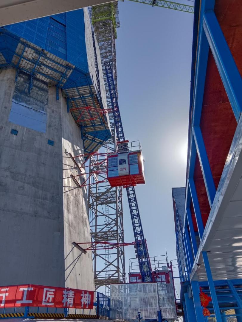 廊坊凱博建設(shè)機(jī)械科技有限公司根據(jù)枝江百里洲長江大橋的外形和具體施工要求,提供了SC200型斜直兩用施工升降機(jī)設(shè)備。該型升降機(jī)適用于外立面呈異型或變斜度大的橋塔、煙囪等建筑物施工中,在不增加任何部件的情況下可滿足在不同斜度建筑物的使用要求,能做到在0~15°之間任意變換角度,具有良好的適應(yīng)性。