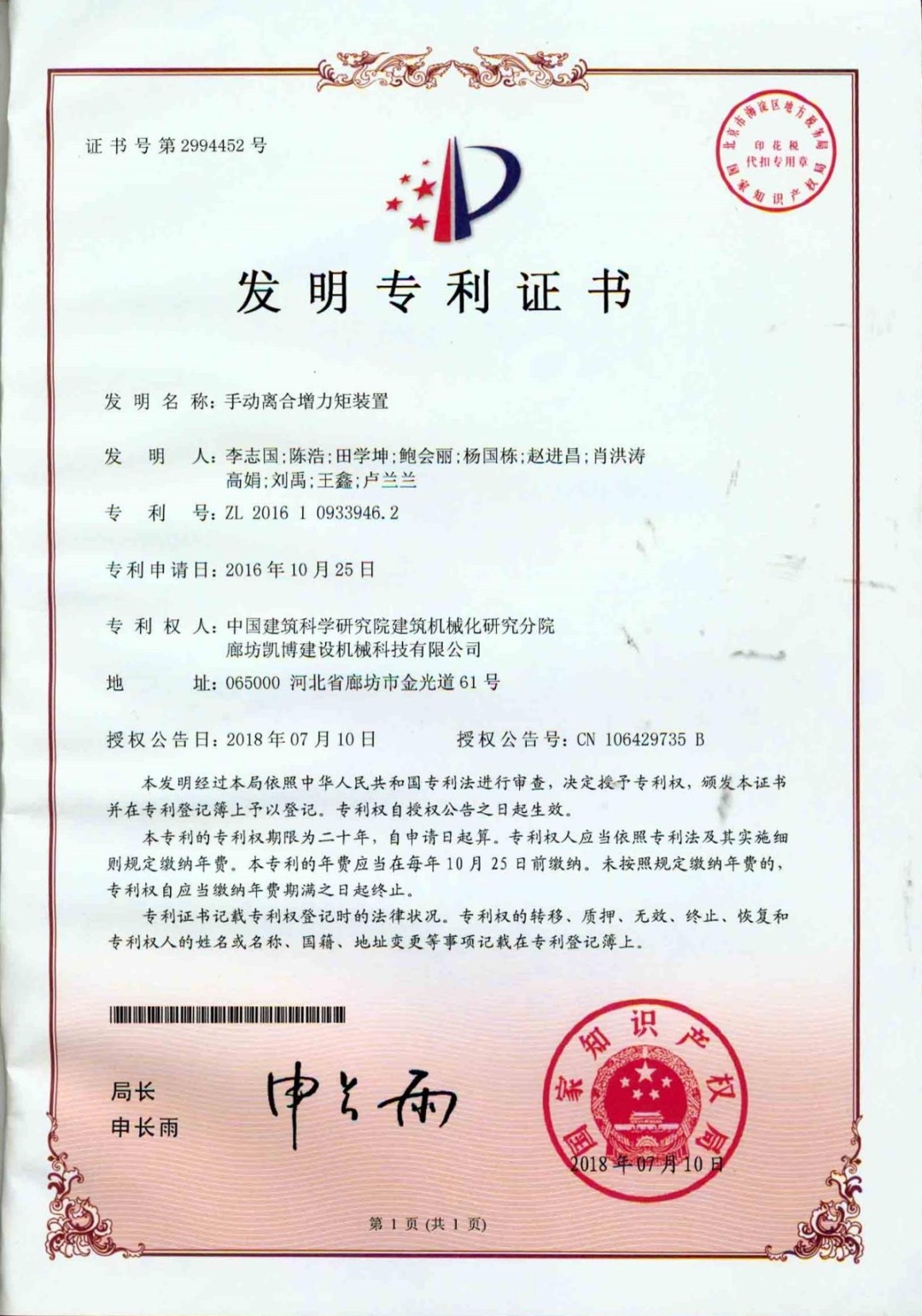 ? ? ? ? ? 本產(chǎn)品獲2項發(fā)明專利——施工升降機組合式驅(qū)動系統(tǒng)(專利編號:ZL201710316114.0)和手動離合增力矩裝置(專利編號:ZL201610933946.2);主編參編GB/T37537-2019《施工升降機安全監(jiān)控系統(tǒng)》、GB/T 26557《吊籠有垂直導(dǎo)向的人貨兩用施工升降機》兩項國家標(biāo)準(zhǔn);2021年榮獲“華夏建設(shè)科學(xué)技術(shù)獎”二等獎。為解決我國超高層建筑人員物料垂直運輸?shù)母咝О踩椒€(wěn)運行難題提供了強有力的技術(shù)支撐。