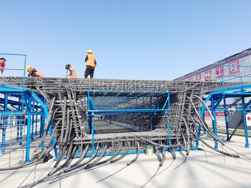 廊坊凱博建設(shè)機(jī)械科技有限公司(凱博科技)依托北京建筑機(jī)械化研究院有限公司在鋼筋加工機(jī)械領(lǐng)域多年的技術(shù)積累,針對高鐵箱梁預(yù)制施工各環(huán)節(jié)對鋼筋制品的差異化需求,潛心研究、精心攻關(guān),按照中鐵十一局集團(tuán)橋梁有限公司項(xiàng)目需求,助力新建首個(gè)滬渝蓉項(xiàng)目武宜段WYZQ-5標(biāo)荊門鐘祥制梁場。其中鋼筋加工數(shù)字化項(xiàng)目,包含GQX-300數(shù)控鋼筋剪切生產(chǎn)線、GWXL2-32D數(shù)控彎曲中心、GWXL4-25D數(shù)控彎曲中心、GQX-GWX-25數(shù)控鋼筋剪切彎曲一體生產(chǎn)線、GGJ12數(shù)控鋼筋彎箍機(jī)、GT5-12調(diào)直機(jī)(32米)、GTWQ12調(diào)直五機(jī)頭、HJDW12焊接定位網(wǎng)等多種設(shè)備,可定制化生產(chǎn)高鐵箱梁預(yù)制施工各環(huán)節(jié)多種鋼筋制品。